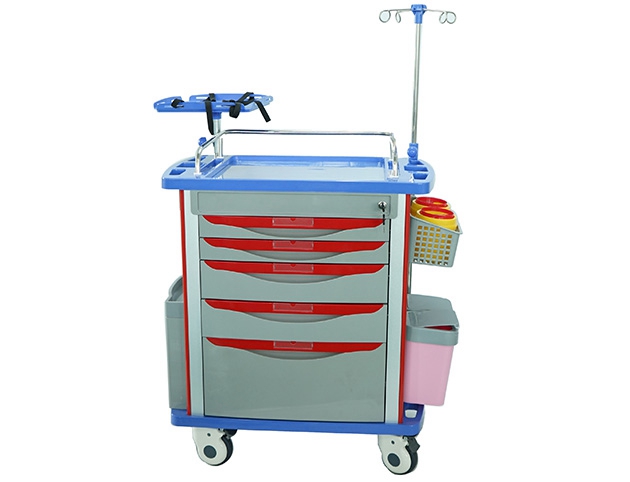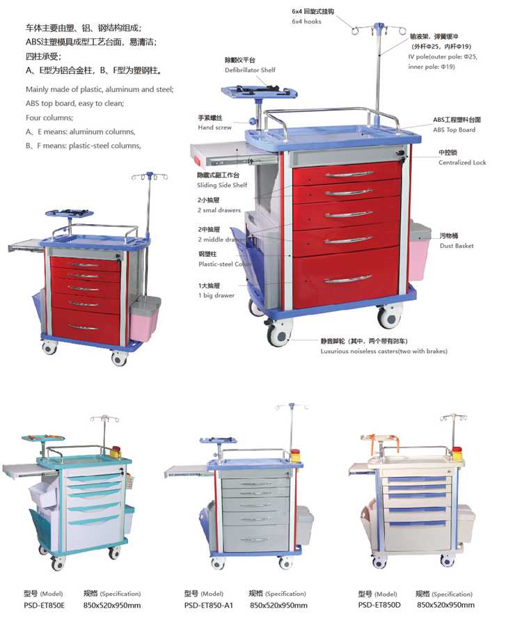 3、本急救车配备4个脚轮,4个都具有刹车功能。如推不动时请查看脚轮是否置于刹车状态。