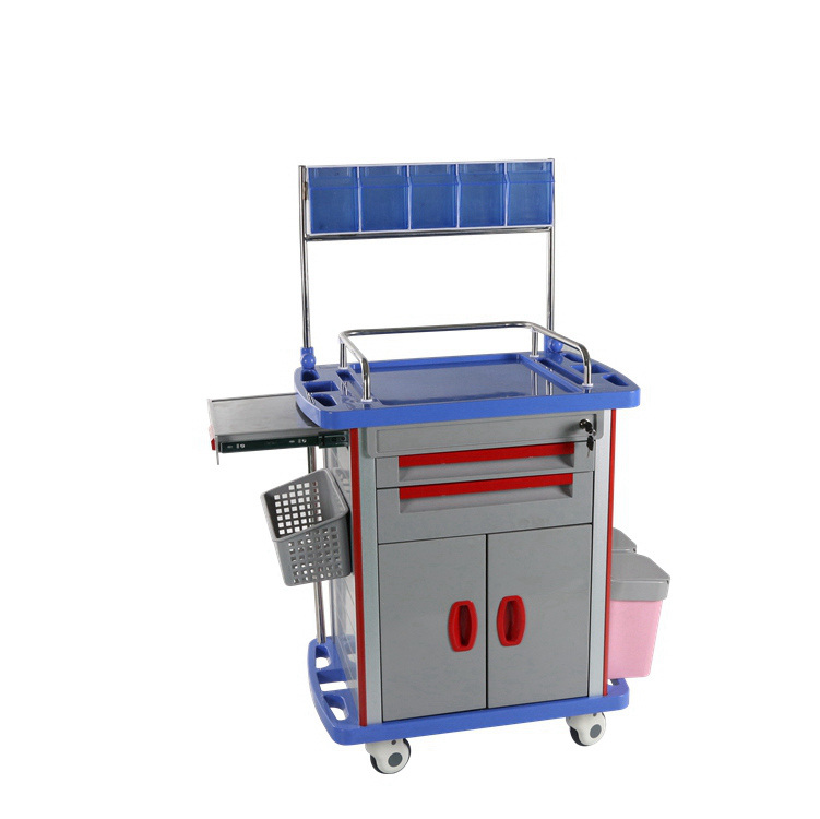 2.ABS弧形底面注塑工艺成型两侧带有扶手,专业锐器盒,可左右任意摆放,凹陷设计可防止物品滑落,凹陷尺寸:512*433*12mm台面配有304材质不锈钢护栏,台面上配透明软玻璃;