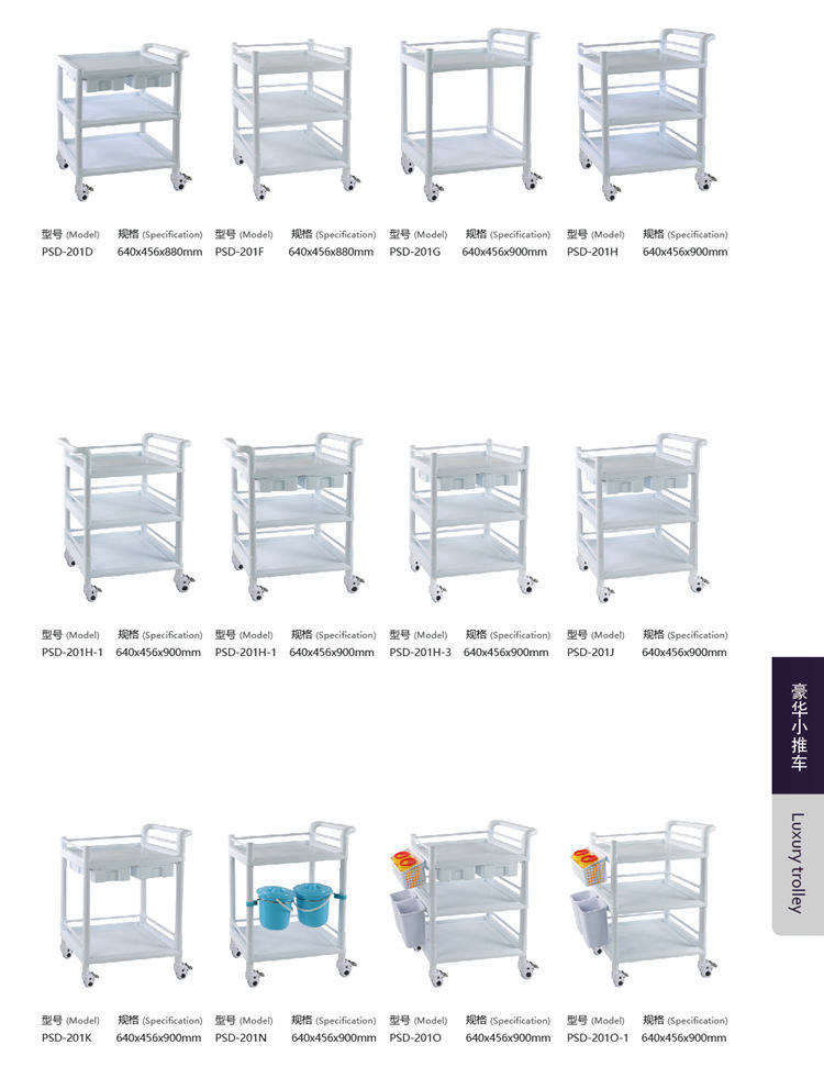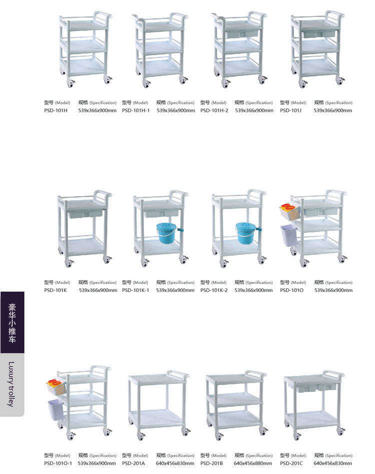 五.实用于医院多出用途,临床 送药、治疗、放监护仪,放心电图机,等等;可多款选择,二层、三层、甚至四层、五层根据医院非标订做 ;