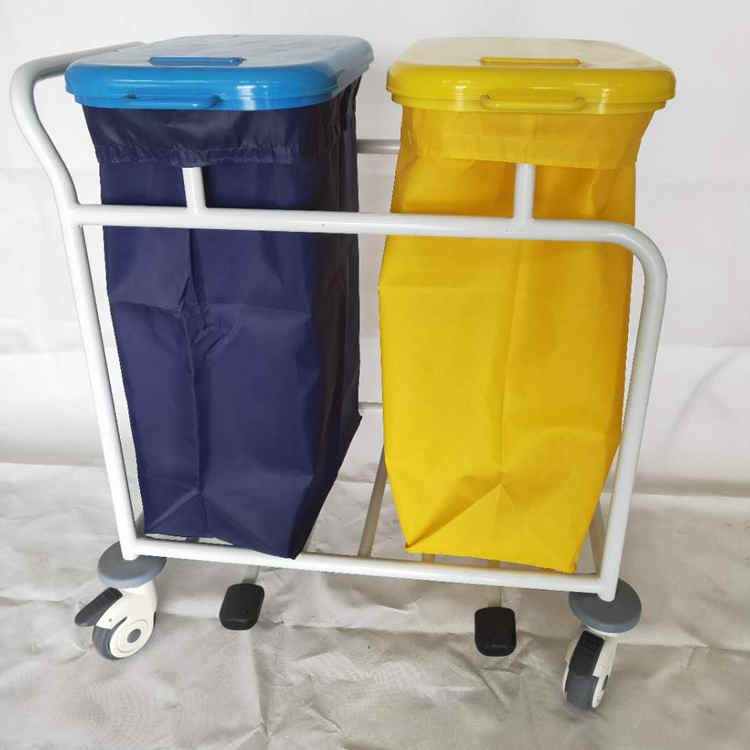 品名:脚踏双桶污物车 医用双筒污衣车 单筒污衣车 规格:810*590*870mm 1、 车体由冷钢喷塑材料组成,板材厚度1.0mm,表面易清洗、擦拭、耐腐蚀; 2、 脚踏升降式污物带自动复位,污物袋为帆布材质,分色管理,防渗漏,、清洗; 3、用途:被服车、垃圾车、置器针筒车、污物车; 4、脚轮要求:万向静音轮,其中2只带刹车功能,脚轮材料为高强度聚氨酯,防静电、防毛发缠绕、移动轻便灵活; 5、车体四周安装有防撞装置;