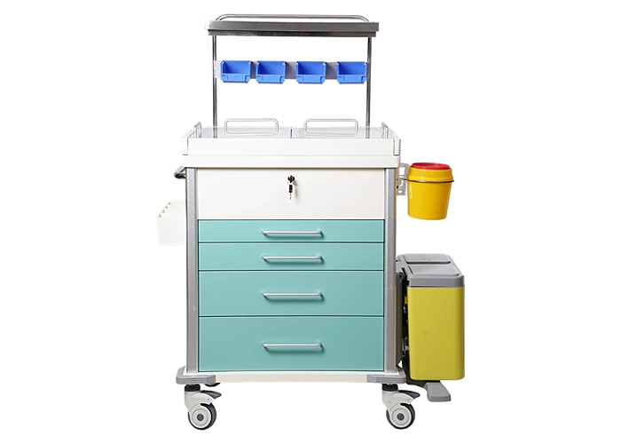 配件功能: A:高架桥透明储物盒适合放置各类治疗附件,推拉式空间便于存放大输液物品