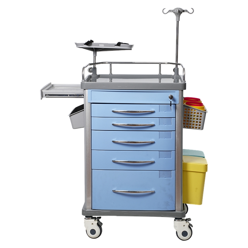 4、升降输液架外杆,内杆Φ16,4个Φ6回旋;背面:除颤板上下托挂钩、5M电源插板、氧气瓶基座;